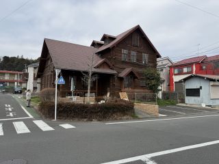 ログハウス造り2階建て・ウッドデッキテラス付きの独立型店舗。