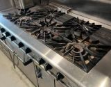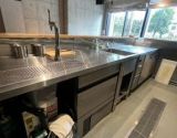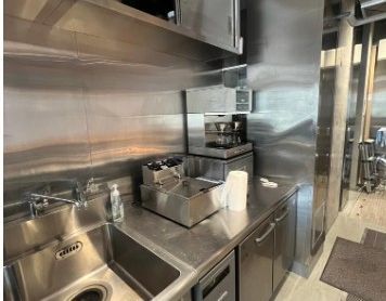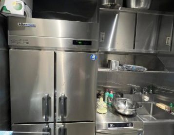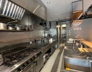●コンベクションオーブン/6口ガスコンロ/ビールサーバー/シンク(給排水設備)/冷蔵庫/製氷機/コーヒーメーカー/小型フライヤー/エアコン3台/調理器具・食器類/音響スピーカー/温水洗浄便座/テーブル椅子等あり
