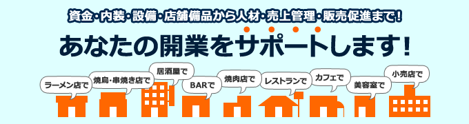 開店から閉店まで飲食業のトータルサポートを行っています。